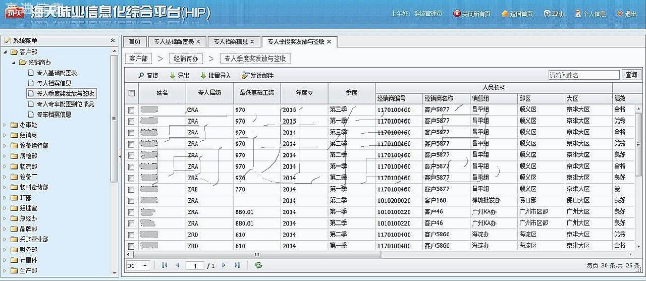 信息化綜合平臺(tái)(HIP)包含了該上市公司的80%日常辦公和生產(chǎn)經(jīng)營(yíng)信息化管理。業(yè)務(wù)涉及多個(gè)部門的管理:質(zhì)檢部管理、物流部管理、設(shè)備管理、采購營(yíng)業(yè)部管理、生產(chǎn)部管理、合同管理、IT部開發(fā)審批流程管理、工程設(shè)備管理、市場(chǎng)推廣部管理、投資發(fā)展部管理、人事招聘子系統(tǒng)、培訓(xùn)子系統(tǒng)、考試子系統(tǒng)、人員管理子系統(tǒng)等。