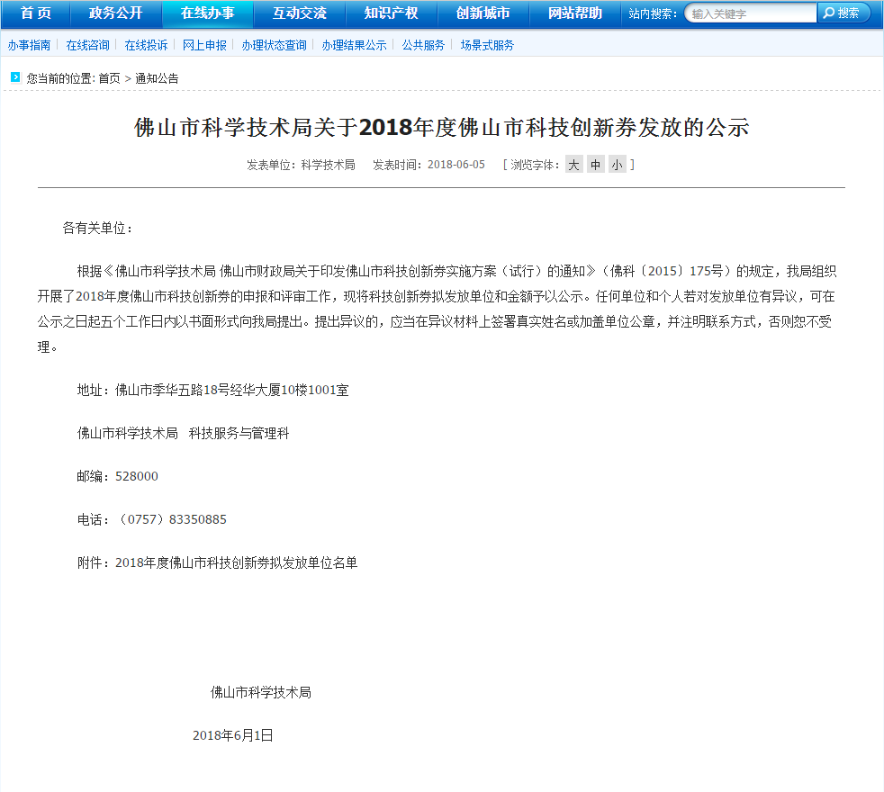 近日,佛山市科學(xué)技術(shù)局網(wǎng)對外公布了“2018年度佛山市科技創(chuàng)新券擬發(fā)放單位名單”,我司作為中小微企業(yè)的一員,榮登榜單之中,可喜可賀。科技創(chuàng)新劵的發(fā)放是對我公司快速發(fā)展、自主研發(fā)的肯定,激勵我們繼續(xù)推動公司的技術(shù)研發(fā)建設(shè)和堅持以“勇于創(chuàng)新、科技興企”的發(fā)展戰(zhàn)略方針。以下為《佛山市科學(xué)技術(shù)局關(guān)于2018年度佛山市科技創(chuàng)新券發(fā)放的公示》通知文件。