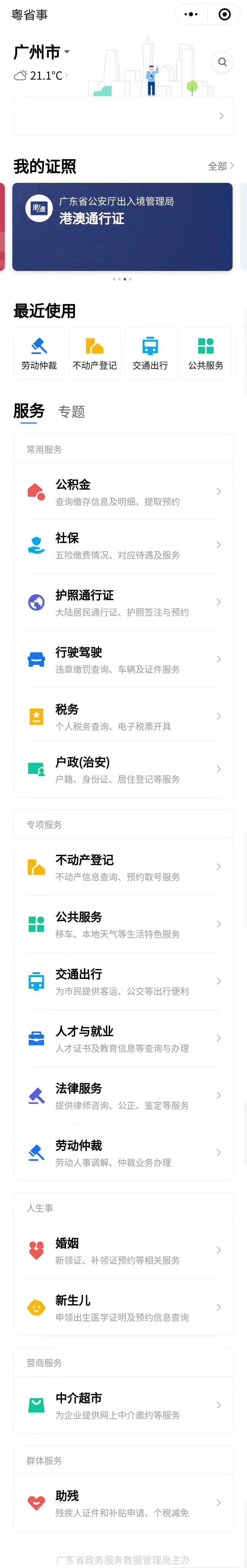 “粵省事”移動民生服務(wù)平臺是廣東省政府為全省人民打造的指尖辦事利器,作為全國首個集成民生服務(wù)微信小程序,提供政務(wù)服務(wù)新增上線到期提醒、辦結(jié)通知,評議投訴咨詢政策解讀等全方位個性化信息服務(wù)。