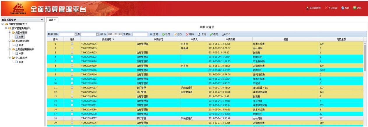 九江酒廠有限公司由于業(yè)務(wù)發(fā)展需要, 我司應(yīng)九江酒廠需求對全面演示平臺(下稱子系統(tǒng))項(xiàng)目進(jìn)行開發(fā)。子系統(tǒng)包括用款申請書、差旅費(fèi)報銷單、業(yè)務(wù)應(yīng)酬報銷單和個人借款單四大模塊,四大模塊在原來的基礎(chǔ)上進(jìn)行改造,對費(fèi)用出口進(jìn)行改造,通過定時器定時把正式系統(tǒng)的數(shù)據(jù)同步到子系統(tǒng)中,用戶也可以在子系統(tǒng)中新增數(shù)據(jù)并可以作提交、刪除、作廢和打印等操作。